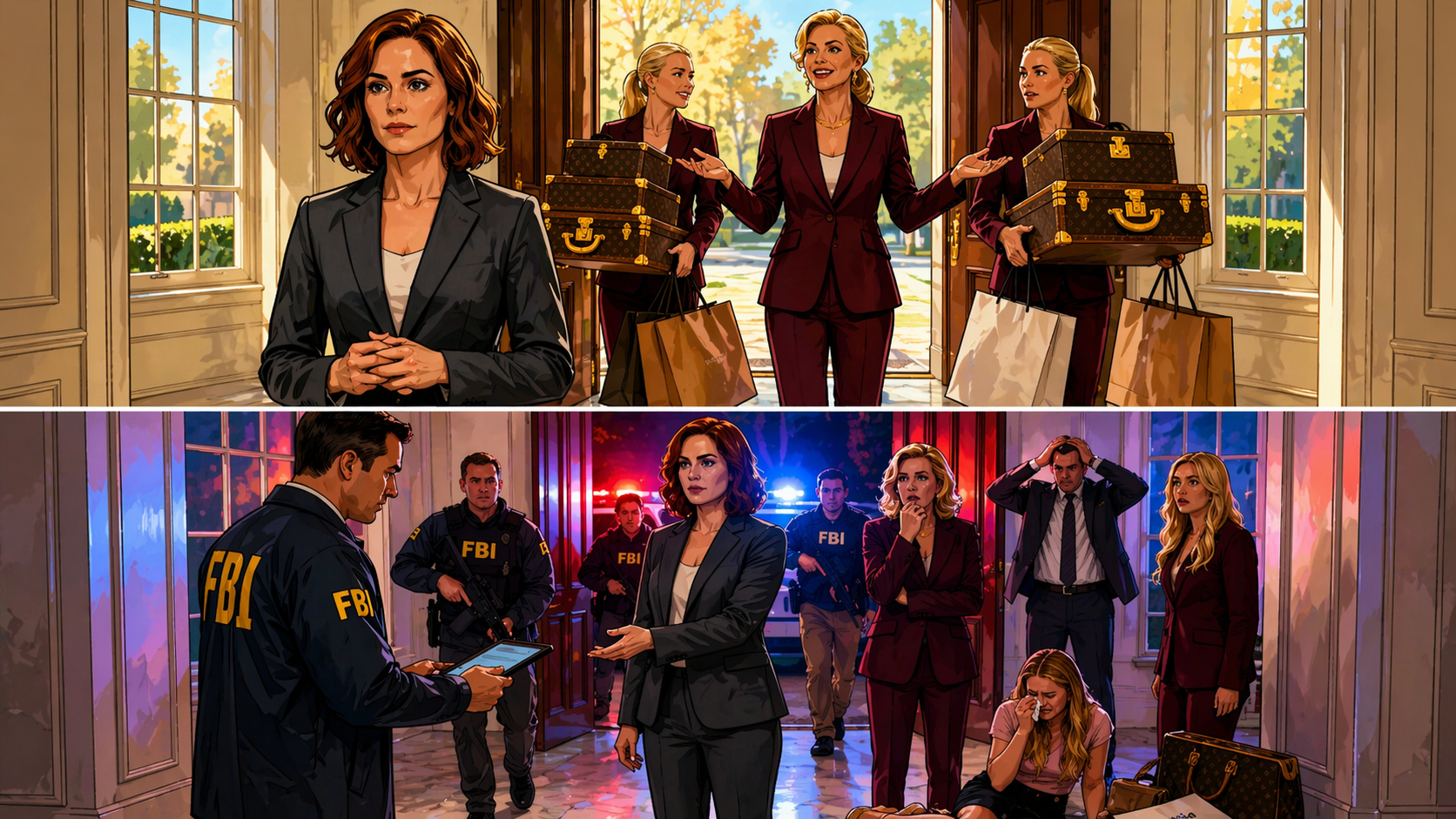 The door burst open. Armed agents filled the foyer in jackets marked FBI. Behind them came investigators, legal officers, and a man carrying a thick envelope.