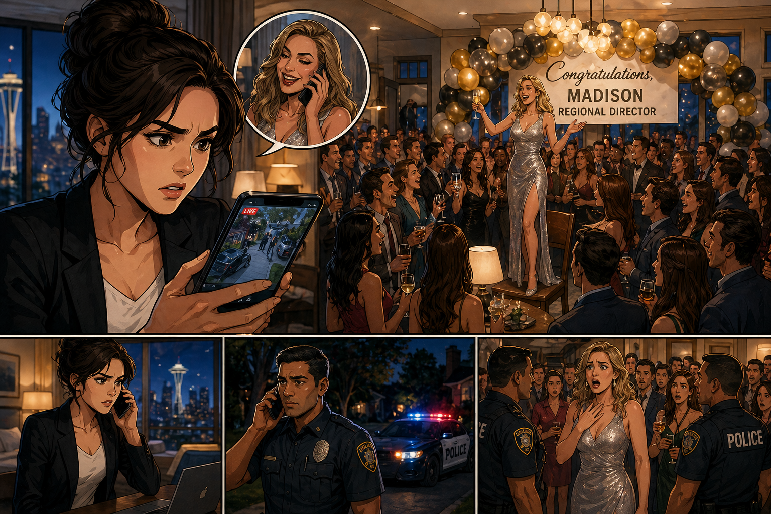 While I was away, my sister chose to turn my house into the setting for her major career celebration—nearly a hundred people pouring in without a single word of permission. When I told her to end it immediately, she laughed and said, “This night isn’t about you — I’m not stopping for anyone.” That was the moment I made one quiet call. Minutes later, I stopped arguing and simply watched….