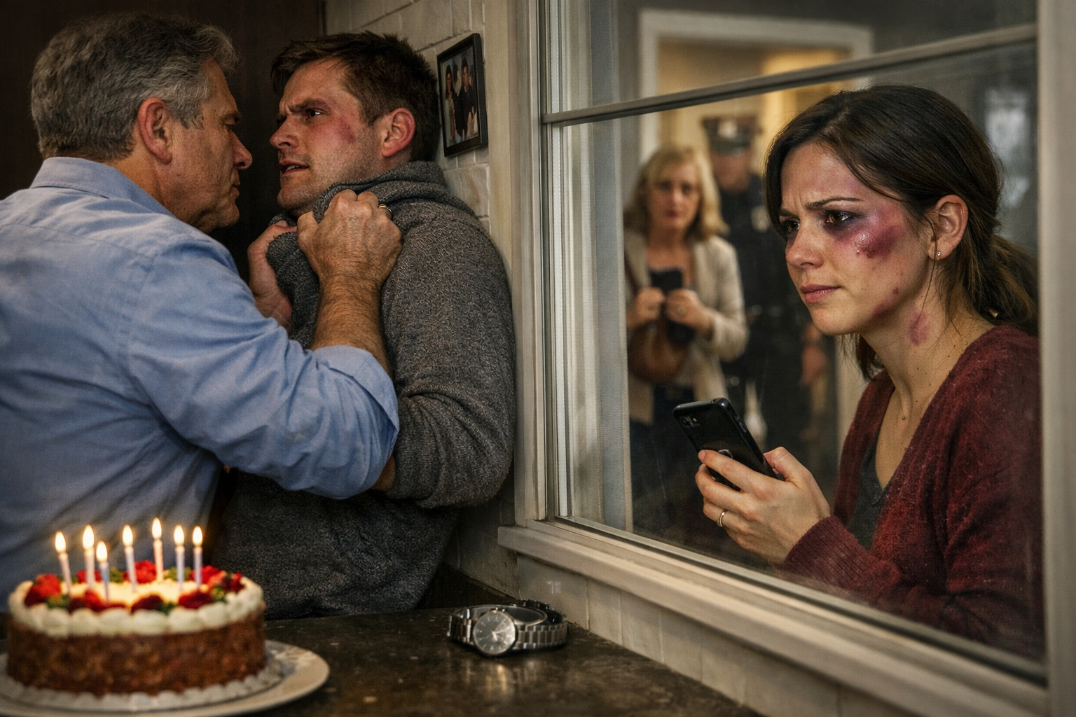 La polizia arrivò prima ancora che accendessimo le candeline. Separarono tutti. Raccontai tutto: le spinte, i lividi, i messaggi controllati, la paura. Mostrai le prove che avevo nascosto.