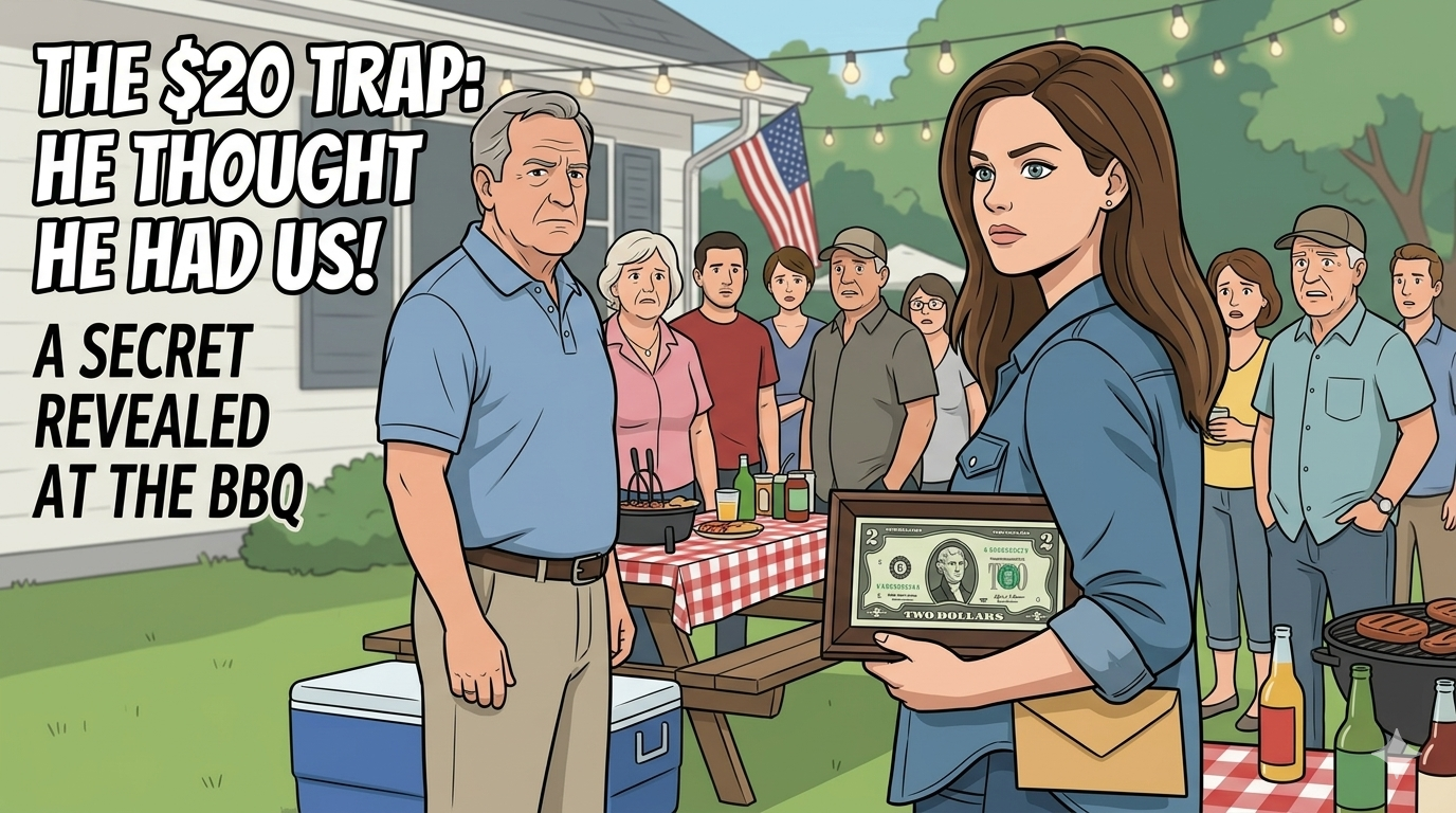 My dad threw fifty dollars at my face on my eighteenth birthday and called it “help” – eleven years later, I walked into his backyard party with the same bill framed on my wall and a sealed envelope in my bag that could end every story he’d ever told about me. On my eighteenth birthday, I baked my own cake in a little beige kitchen at the back of a small American house. Funfetti from a box. One candle. No balloons. No friends hiding in the pantry waiting to yell surprise. Just me, the hum of the fridge, and the sound of a football game drifting in from the living room. The back door opened. Work boots. Dust on his jacket. My dad. He looked at the cake, then at me. No smile. No “happy birthday, kid.” He pulled a fifty-dollar bill from his wallet and tossed it onto the counter like he was tipping a stranger. “Happy birthday. Get out. I’m done paying for another man’s mistake.” My grandmother was sitting in the next room. I heard the couch creak and then go still. My brother was on the stairs, fingers tight around the railing, mouth half open like he wanted to say something and swallowed it instead. Nobody moved. I picked up the fifty, blew out my own candle, and called my uncle from the landline in the hallway. That was the night I stopped being “the problem child” in his house and became “the girl who left” in every story he told after.