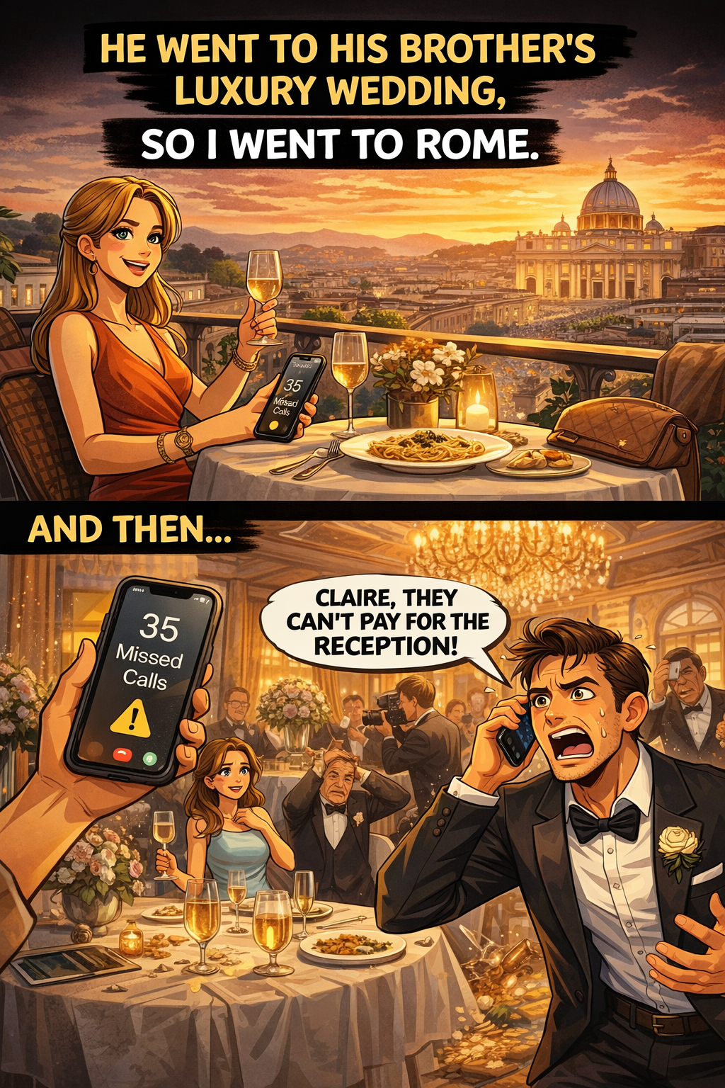 For two days, I posted only glimpses—champagne on the flight, sunset over terracotta rooftops, my hand holding espresso in a sunlit piazza. Ethan texted less and less. Then, on the night of the reception, as I was halfway through truffle pasta on a rooftop terrace, my phone lit up with his name.